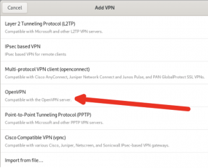 After successfully installing OpenVPN, close the terminal and go to Settings > Network > Click the + to create a connection