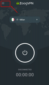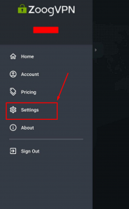 1. Open ZoogVPN Android app and navigate to settings.