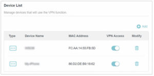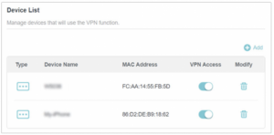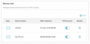 9. Done! The specified devices will now have access to the VPN server you activated.