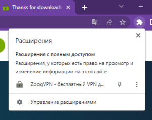 4. Кликните на иконке ZoogVPN, чтобы открыть расширение.